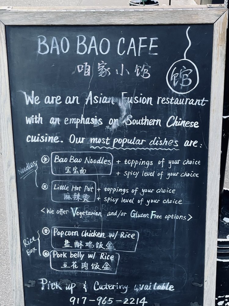 Whether you're dining in the cozy indoor area, enjoying the outdoor seating, or opting for takeout and delivery, Bao Bao Cafe caters to all with its range of vegan and vegetarian options. Join the happy hour specials, savor the flavors, and feel the warmth of delicious food made with heart!