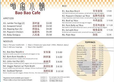 Welcome to Bao Bao Cafe, a vibrant addition to New York's culinary scene, nestled at 214 W 39th Street. This cozy, casual Chinese eatery offers an enticing menu that showcases authentic southern Chinese flavors. Indulge in the popular Bao Bao Noodles, Little Hot Pot, or Pork Belly with Rice, all celebrated for their freshness and delightful taste.